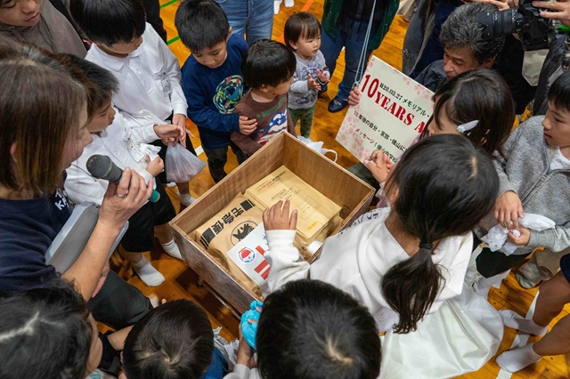俵山地区民文化産業祭が2日、俵山小学校周辺を会場に開かれた。俵山幼児園の園児や俵山小学校の児童による発表、俵山KABUKI倶楽部による「寿式五人三番叟」などが披露されたほか、今年は俵山中学校が閉校して10年を迎える節目として、閉校時に収められたタイムカプセルの開封イベントもあった。